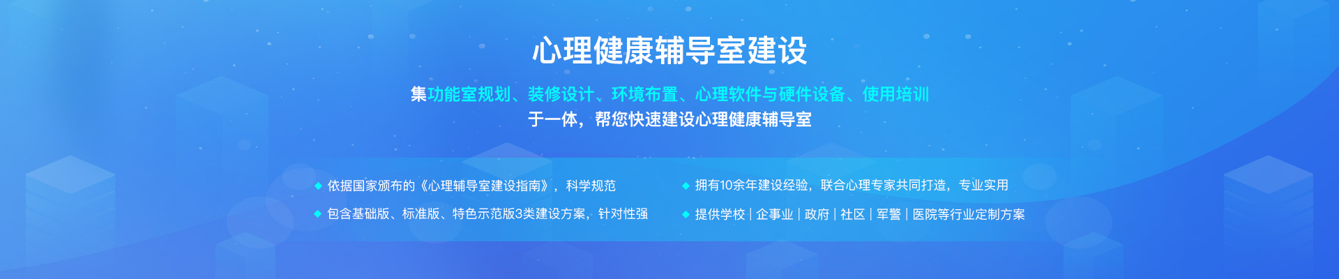 遵循国家《咨询室建设指南规定》,提供“一站式”行业建设解决方案
