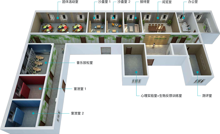 常用配置:音乐放松椅、绿植、心理挂图、心理书籍等
